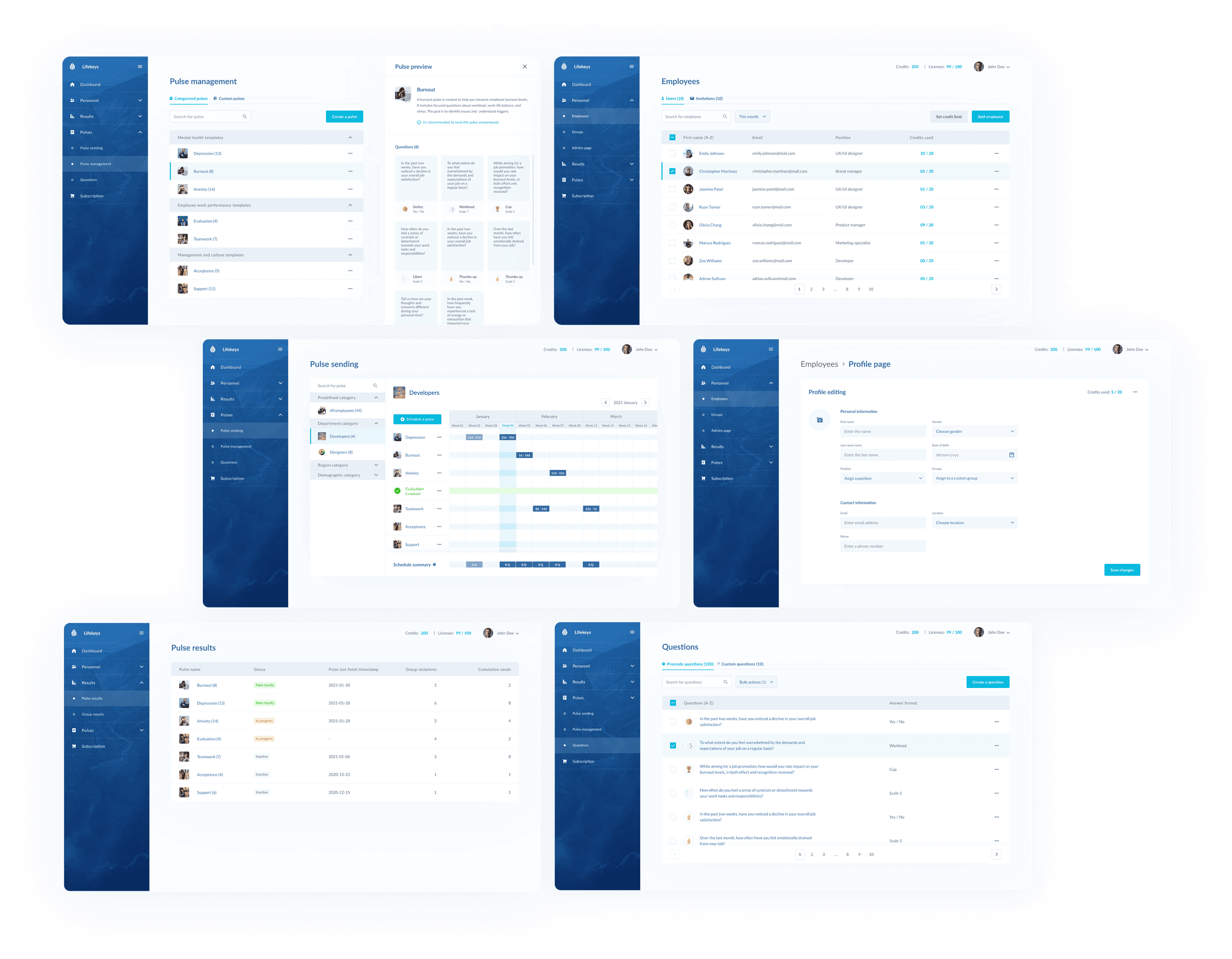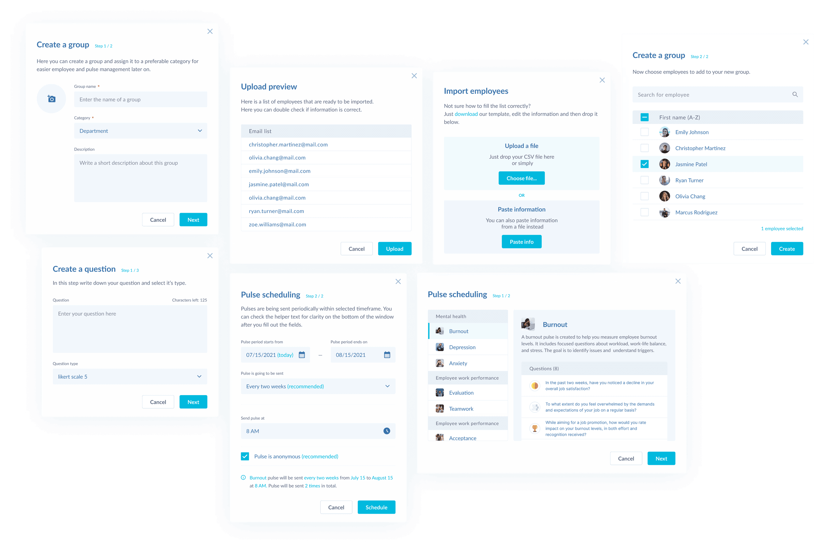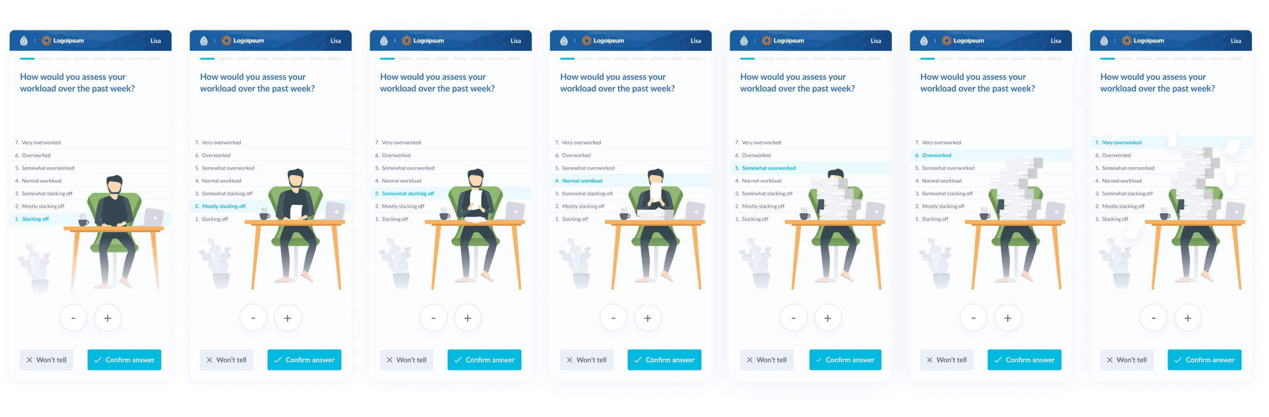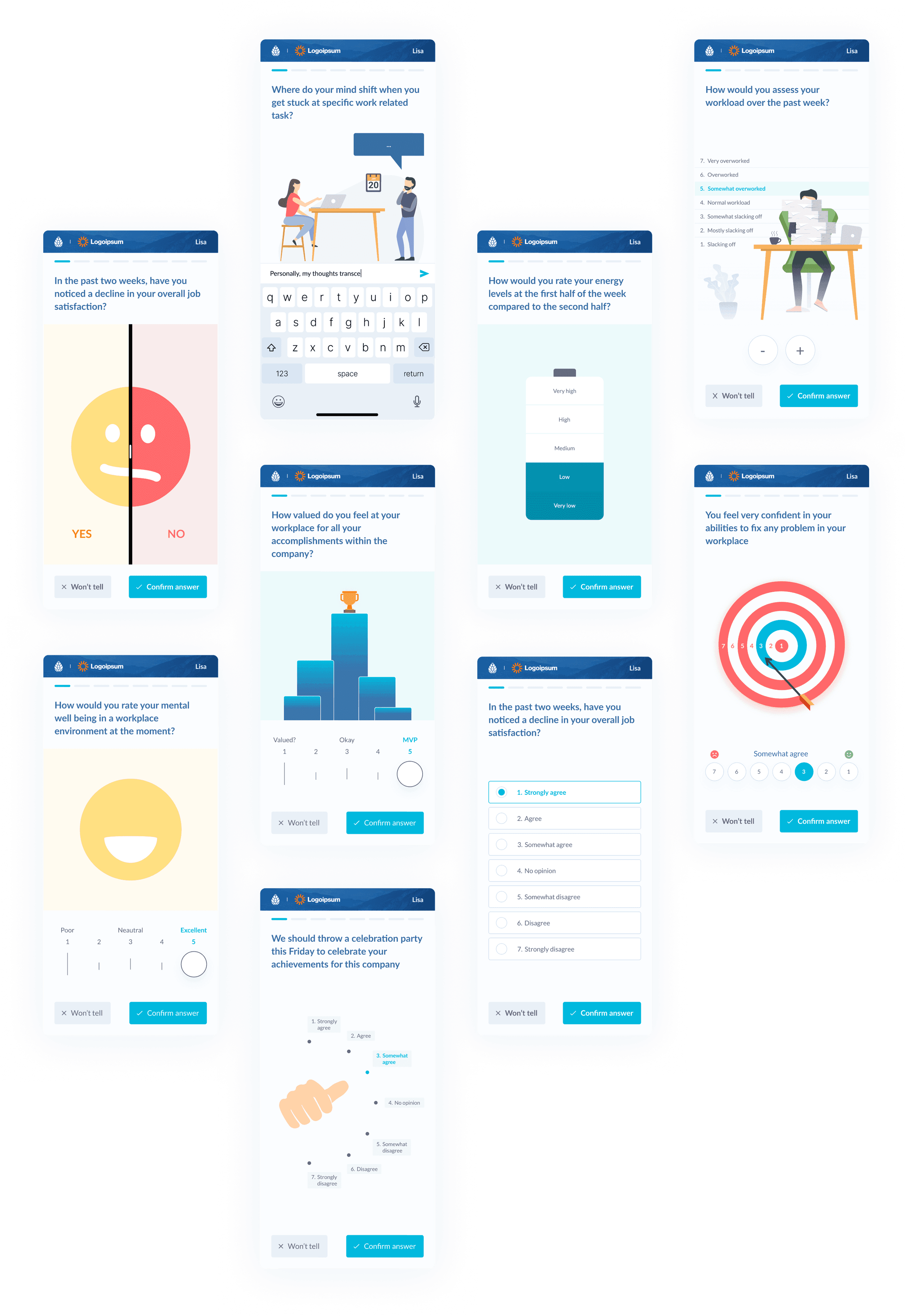 After the dashboard was completed, I also had to design question templates for mobile that employees would receive through a link.